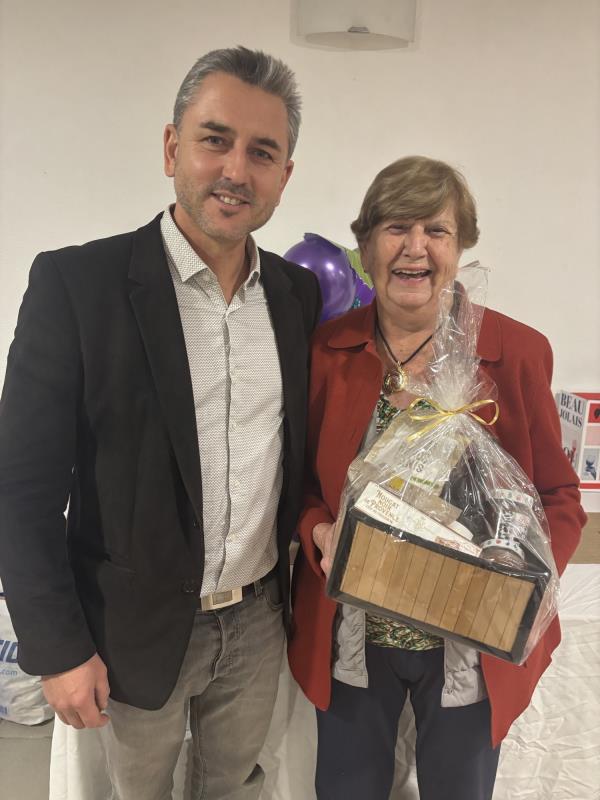 Le moment fort de la soirée ? Le jeu du “juste poids” ! Le participant qui a trouvé le poids le plus proche a remporté le joli panier contenant une bouteille de Beaujolais, du nougat, des navettes, des ronds à l'anis, de la tapenade et des tomates séchées. Bravo à Mme Bourely qui a remporté ce délicieux panier !