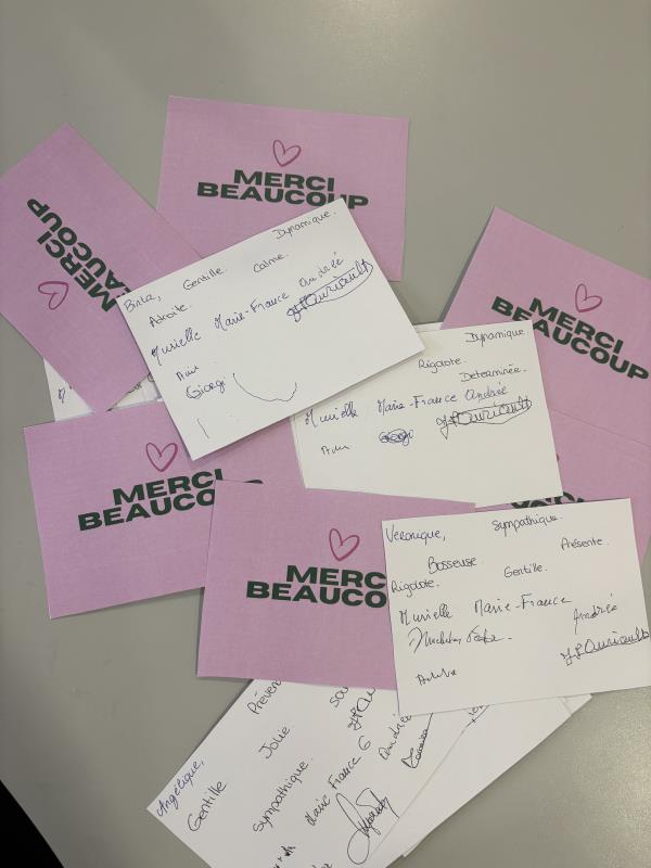 Chacun a pris le temps d’écrire une liste de compliments pour chaque soignant. Les cartes ont ensuite été signées puis offertes aux soignants.