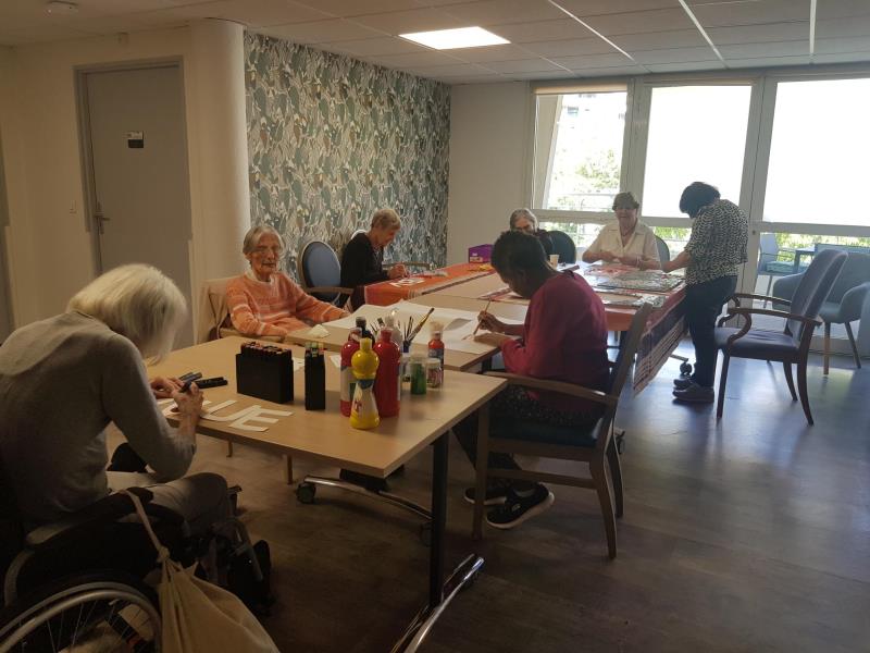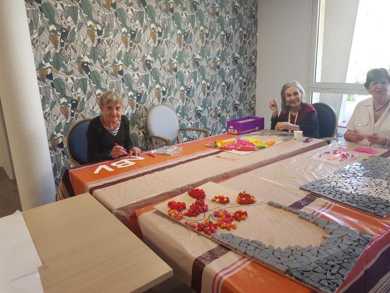 Dans le cadre des activités du PASA, les résidents participent chaque mardi après-midi à un atelier de mosaïque. Cette activité créative leur permet de stimuler leur motricité fine, leur concentration et leur imagination. Dans une ambiance conviviale et apaisante, chacun réalise des œuvres uniques en assemblant couleurs et formes selon ses envies. Cet atelier favorise également les échanges entre les résidents, renforçant ainsi le lien social et le plaisir de créer ensemble.