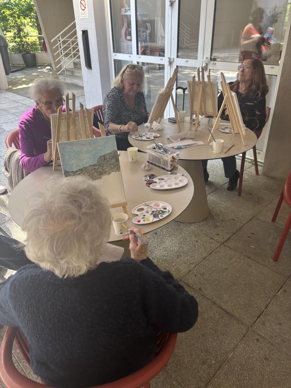 Dans le cadre des activités proposées à la résidence, les résidents ont participé à des séances de peinture guidée expressive sur la terrasse. Cet atelier, à la fois créatif et apaisant, a permis à chacun de s’exprimer librement à travers les couleurs, les formes et les gestes, tout en bénéficiant d’un accompagnement bienveillant.